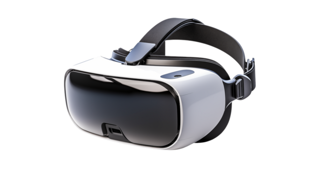 A close up shot of a virtual reality headset with a black strap on a transparent background view png