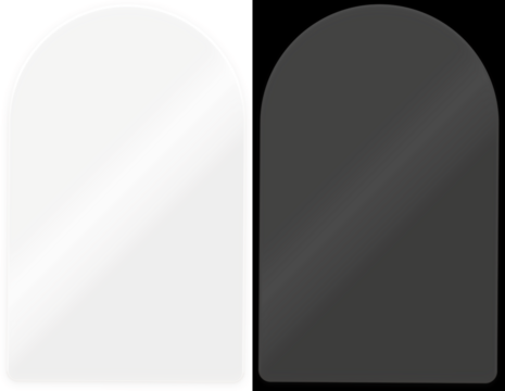 Realistic transparent shiny glossy glass plate panel with light glare reflective surface effect overlay on PNG isolated background rectangle gradient window