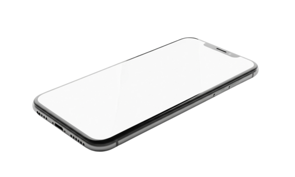 Isolated smartphone with blank white screen display on a black background in studio shot