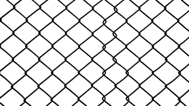 Black chain link fence isolated on transparent background