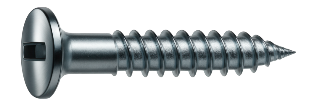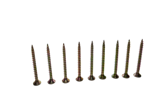 Stainless steel metal screws fasteners for construction, woodworking, and diy projects, transparent background cutout