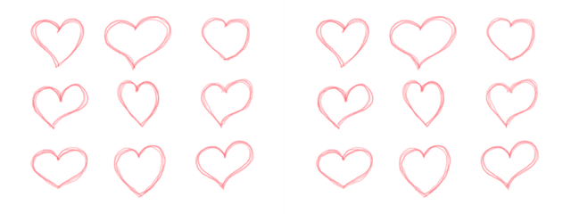 Hand-Drawn Grunge Heart Icon Set – Expressive Love Symbols.