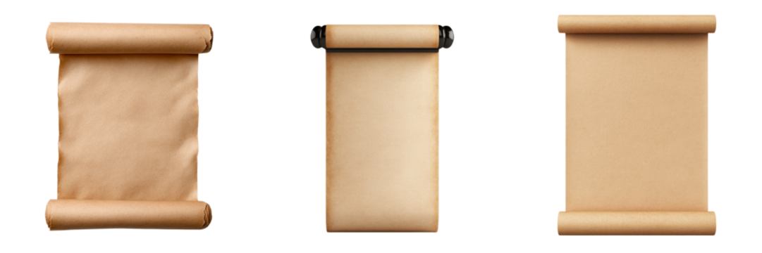Ancient scroll with transparent background, design elements, space for text and illustrations.