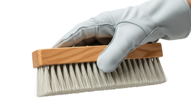 Watercolor illustration depicts a wooden scrubbing brush on a black backdrop