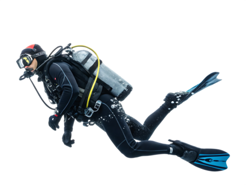 Man scuba diving sports isolated on white and transparent background, cut out png