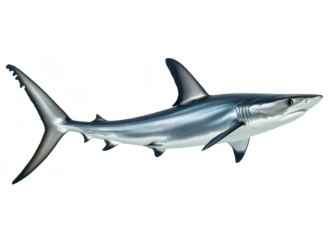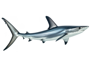 Sleek and agile shark swimming in clear ocean waters, showcasing its powerful form.