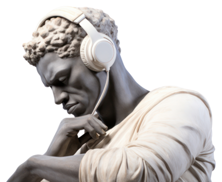 PNG  Greek sculpture listening to music headphones portrait statue.