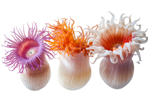 Vibrant sea anemone texture, transparent background