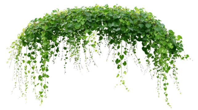 Green lush ivy vines forming an archway, creating a natural frame, border, or corner element with fresh foliage against a transparent background