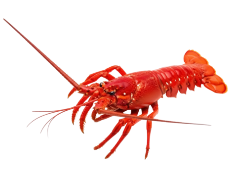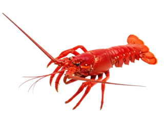 Isolated lobster freshly cooked, ready to eat with its beautiful red shell on display seafood