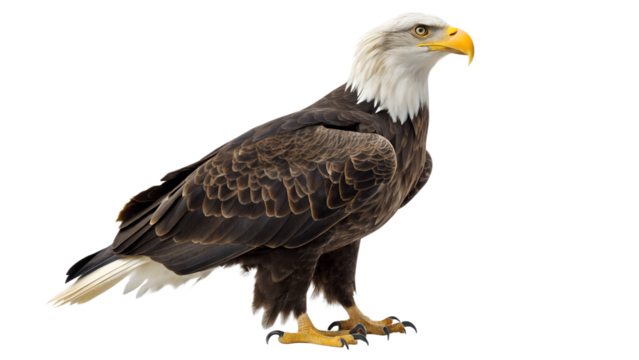 Majestic American bald eagle portrait, a wild raptor bird of prey symbol of the USA, isolated on a white background