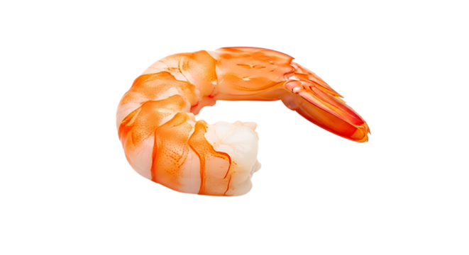 Closeup of a cooked shrimp isolated on transparent background, showcasing its vibrant orange color and curled shape, perfect for culinary and seafoodrelated themes