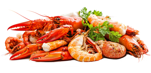 Fresh seafood platter with lobster, shrimp, and crab isolated on transparent background