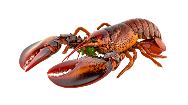 Cooked lobster crustacean seafood dish ingredient, cut out transparent