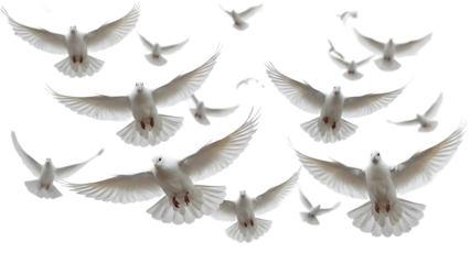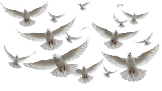 Flocks of  flying pigeons isolated on white background. Save with clipping path.