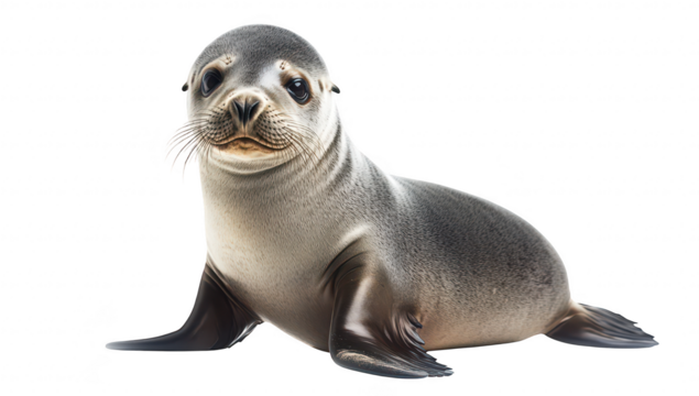 A close-up view of a playful seal lounging on a smooth surface. its glossy fur and inquisitive expression. with a bright. neutral background enhancing its features
