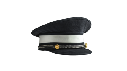 Captain hat with golden insignia isolated on transparent background