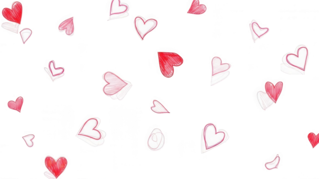Valentine Hand drawn red and white doodle hearts randomly scattered repeating romantic love pattern transparent background