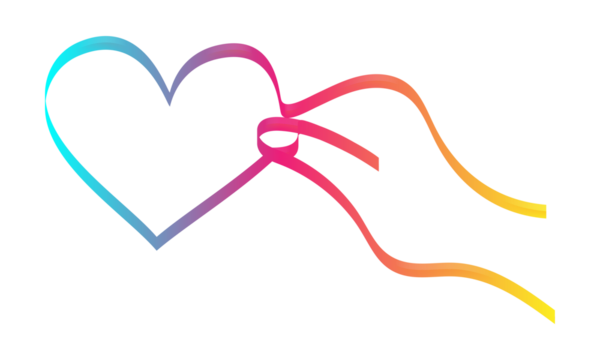 Colorful ribbon forming a heart shape with flowing ends on transparent background