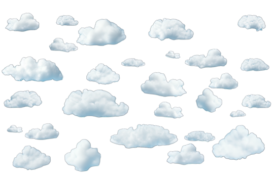 Collection of Stylized Cloud Illustrations on Transparent Background