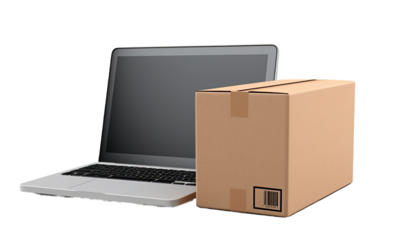 laptop with delivery box on a White or Clear Surface PNG Transparent Background