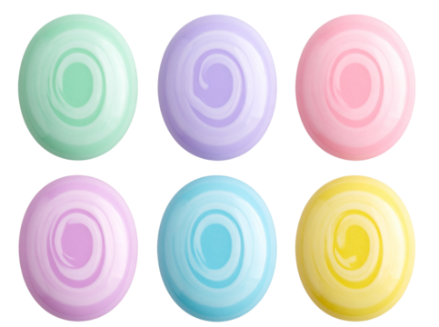 Pastel Oval Candy Set with Swirled Patterns, Isolated on Transparent Background