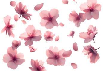 Cherry blossom petals floating in the air, transparent background PNG fil