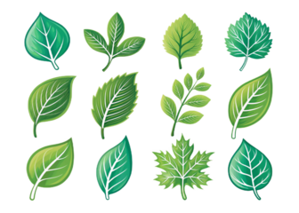Green leaf icons set. Leaves icon on transparent background. Collection green leaf. Elements design for natural, eco, vegan, bio labels