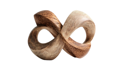 An intricately sculpted infinity symbol made of wood, rendered against a stark black background