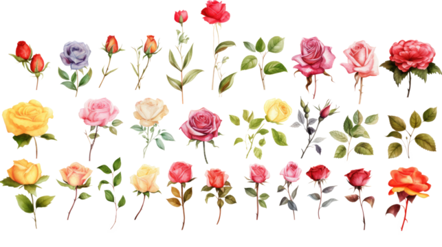 Set of watercolor rose painting isolated on clear png background and transparent background. Fresh and nature concept for nature decorative and flower element, AI generative.