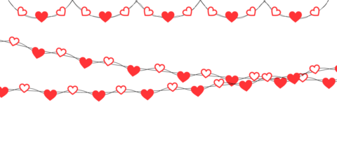 Hanging red paper hearts arranged as a seamless Valentine garland border ideal for celebration designs, party posters, Mother’s Day messages and transparent vector romantic frames