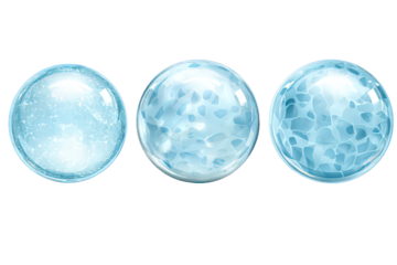 Three Light Blue Glass Spheres with Crackled Textures