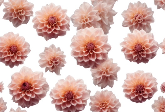 a collection of soft watercolor dahlias flowers isolated on a transparent background, generative ai