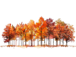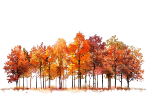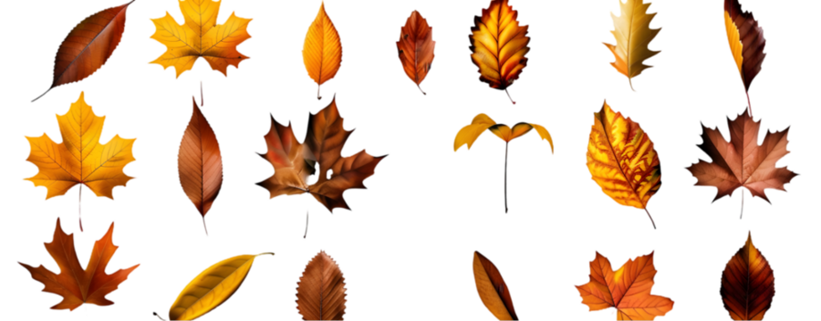 A pattern of colorful watercolor fall leaves isolated on transparent background.