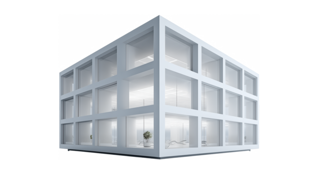 Modern office building with transparent background