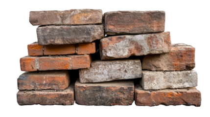 Stack of Old Bricks Isolated on Transparent Background
