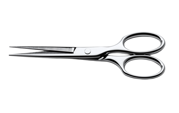 Sharp Precision: A pristine pair of sharp scissors with a gleaming, metallic finish. Their open blades suggest a readiness to cut and shape.
