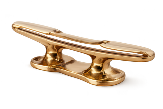 Golden Boat Cleat on transparent background, yacht harbor mooring gear.