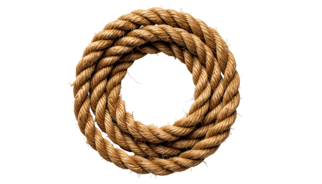 Close-up of coiled, thick, natural-fiber rope against a black background