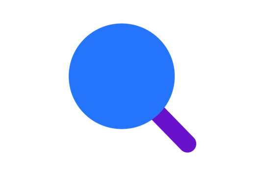 Search Icon - Stylish blue and purple magnifying glass icon for find, discovery, zoom functions in modern web design and mobile application user interface layout, isolated on transparent background.