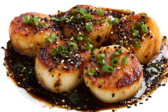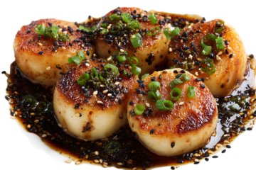 Delightful close-up of seared scallops, a gourmet food item Isolated Transparent Background, PNG