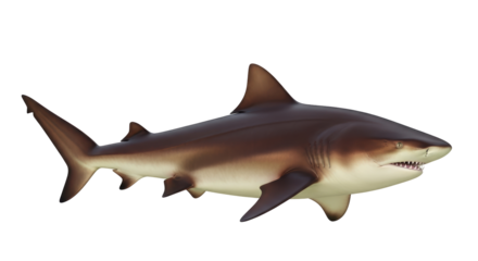 Great white shark realistic side view on transparent background predatory marine animal from sea ocean with dangerous teeth isolated