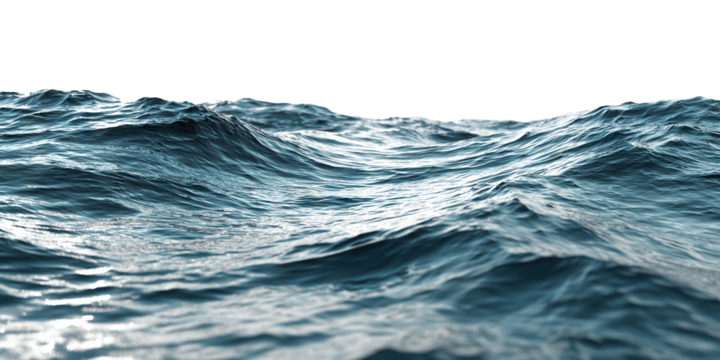 Wavy deep ocean surface with blue water, isolated on transparent cutout background