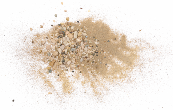 Varied rock formations arranged on a smooth sea sand surface, cut out