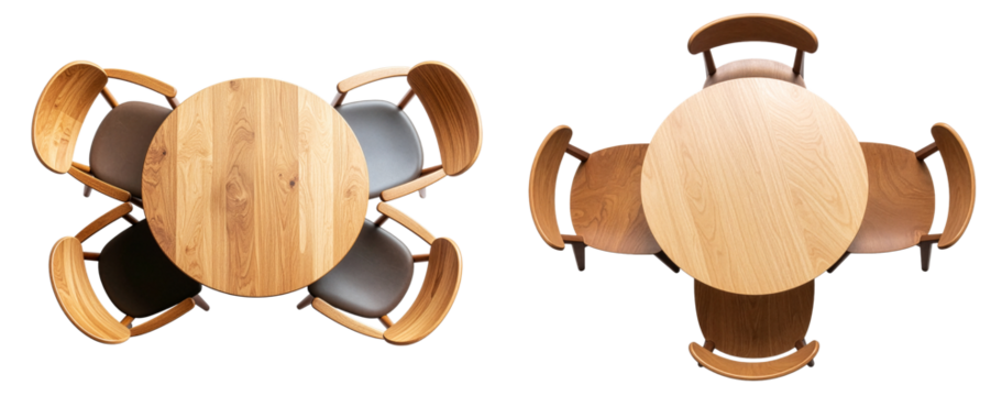 Modern conference room setup with a large wooden table and ergonomic chairs isolated on transparent background