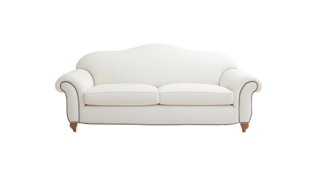 Elegant white armchair with wooden legs stored in a minimalist interior design setting