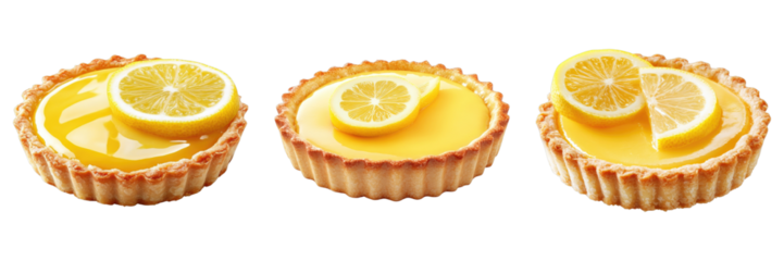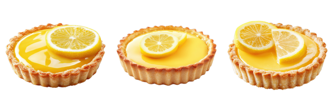 Beautiful presented lemon tart isolated on transparent background. PNG ,Set of