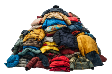 Huge pile of colorful clothes creating a large mound with transparent background