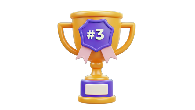Gold trophy on a wooden podium with numbers representing 1st, 2nd, and 3rd place