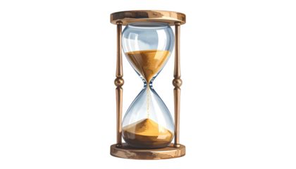 3D hourglass with falling sand, symbol of time passing, background isolated on a Transparent background, PNG file.